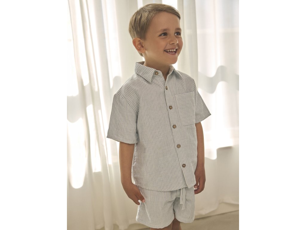 Pruhované šortky od EN FANT. Tieto šortky majú gumu a zaväzovanie v páse, vrecká vpredu aj vzadu.