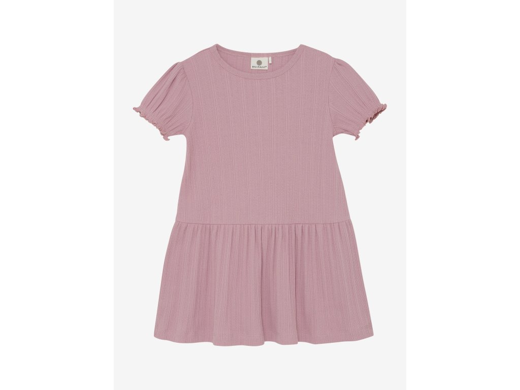 Šaty od EN FANT. Tieto šaty majú sukňu s riasením a krátke rukávy s gumou na konci.
