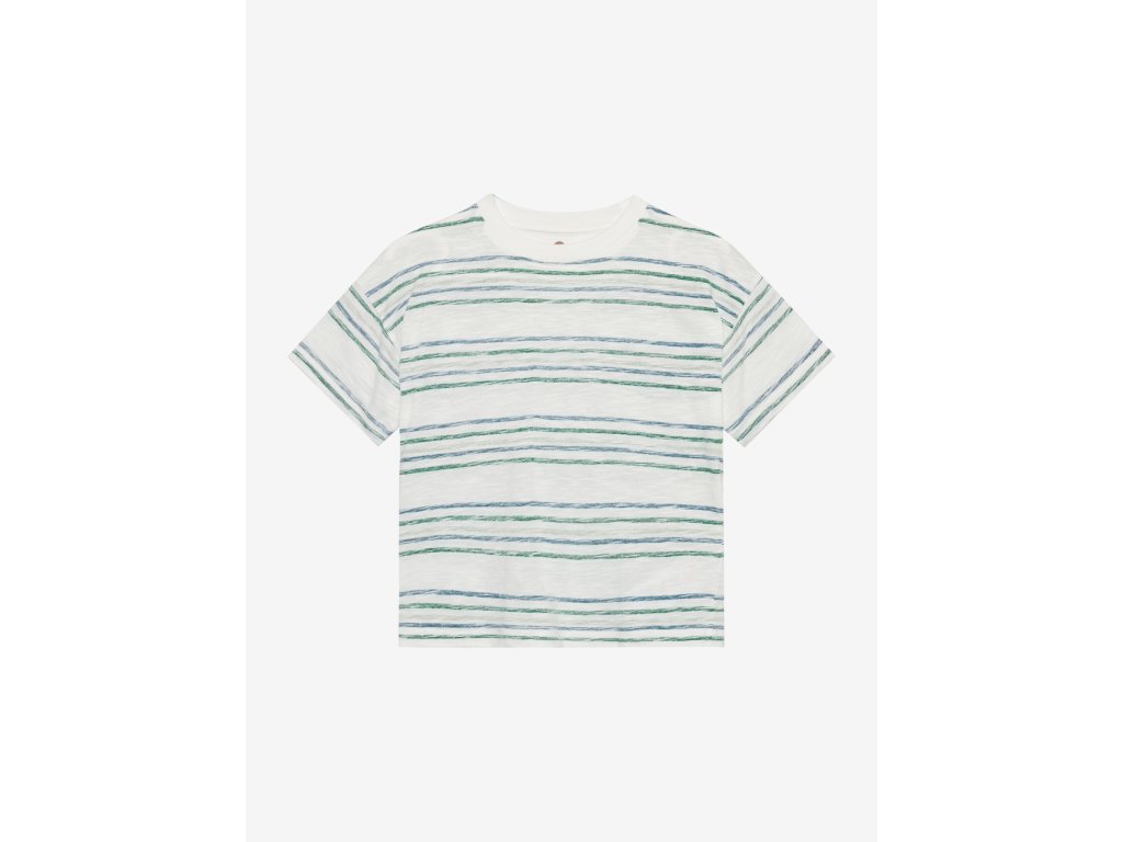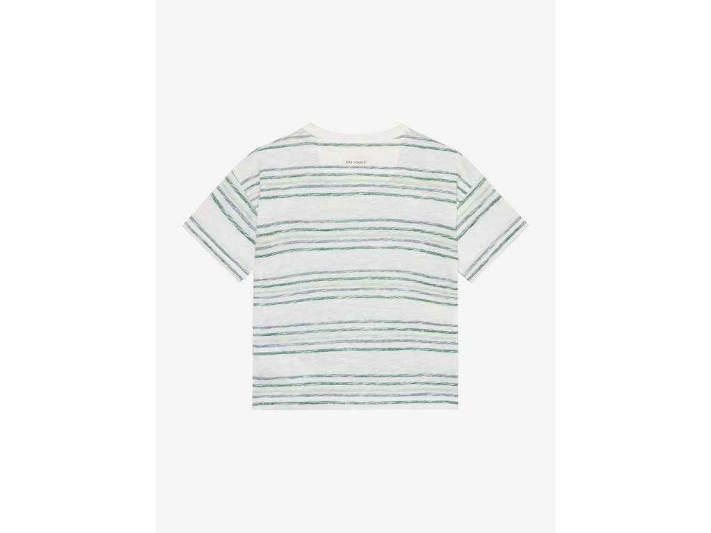 Tričko od značky EN FANT. Toto tričko má pruhy a predĺžené ramená, vďaka čomu pôsobí nadrozmerne a dá sa rozopnúť na ramene.