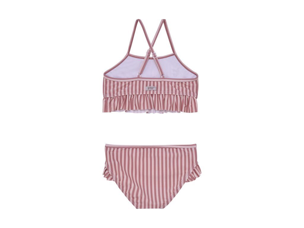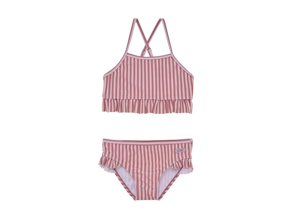 Štýlové dvojdielne plavky pre dievčatá od HUTTEliHUT s jemným pruhovaným vzorom a romantickými volánikmi. Ideálne na leto, dovolenku aj kúpalisko.