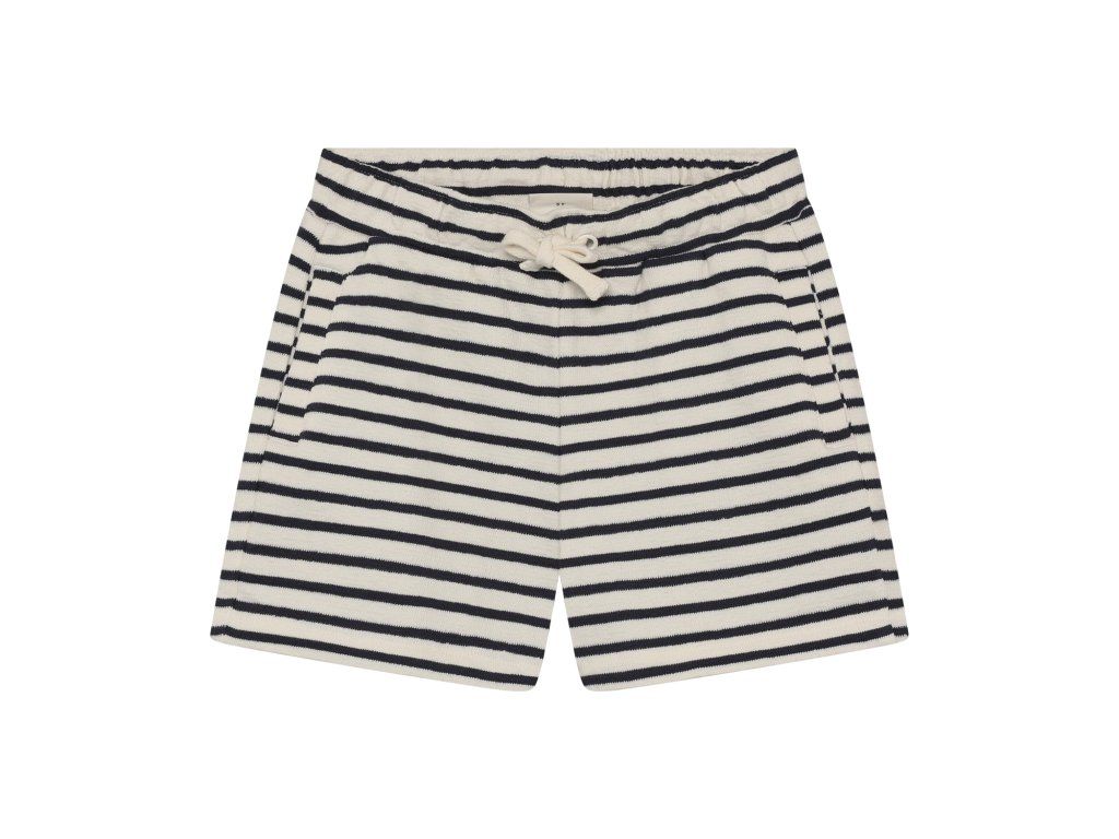 Pohodlné detské šortky od značky Minymo v pruhovanom dizajne. Sú vybavené nastaviteľnou šnúrkou v páse pre lepšie prispôsobenie a praktickými vreckami.