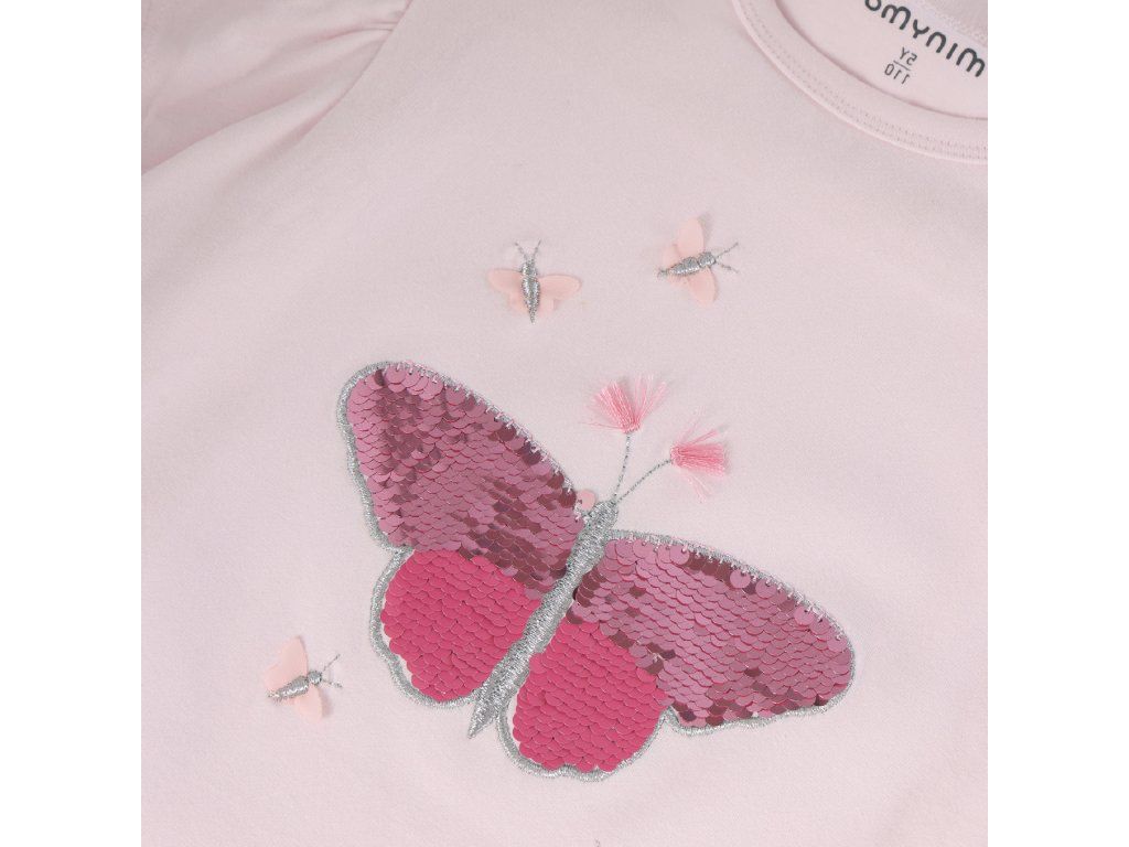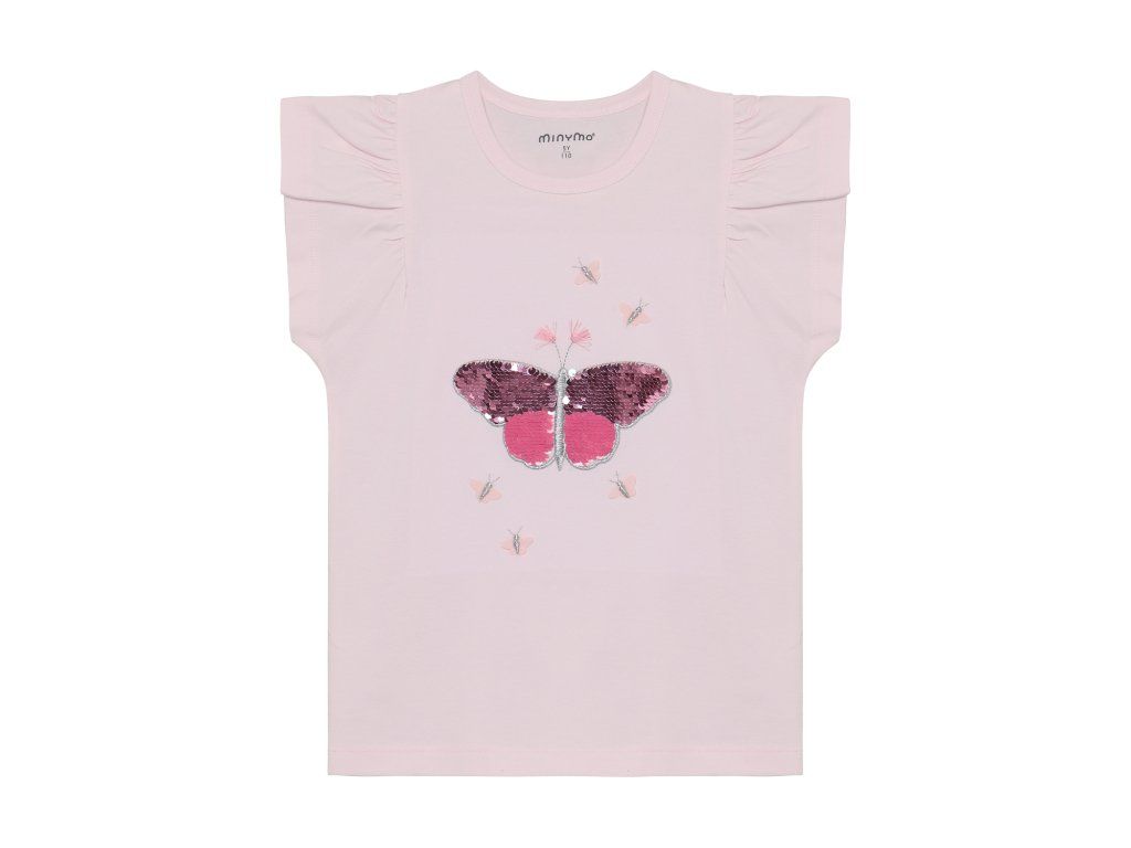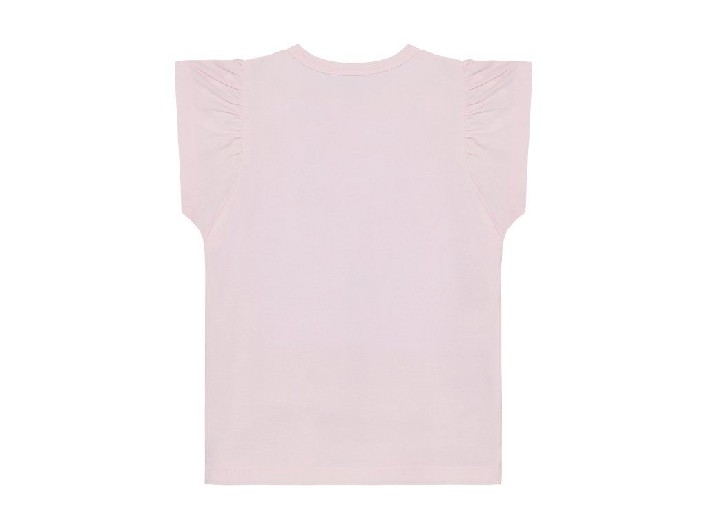 Detské tričko od značky Minymo v jednofarebnom prevedení s potlačou na prednej strane. Jemné riasenie na ramenách dodáva tričku moderný a štýlový vzhľad.